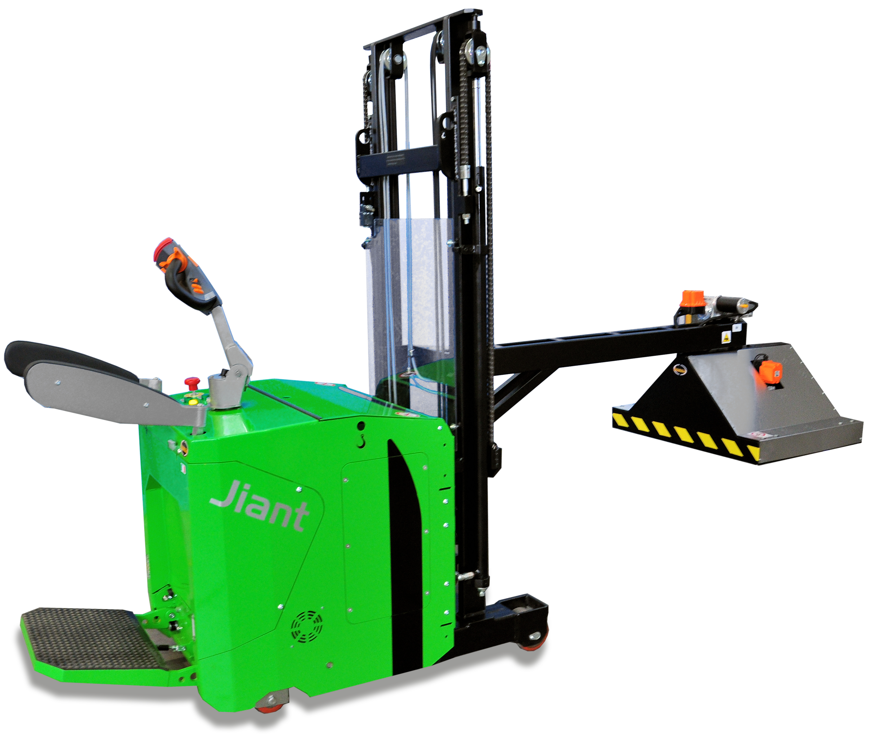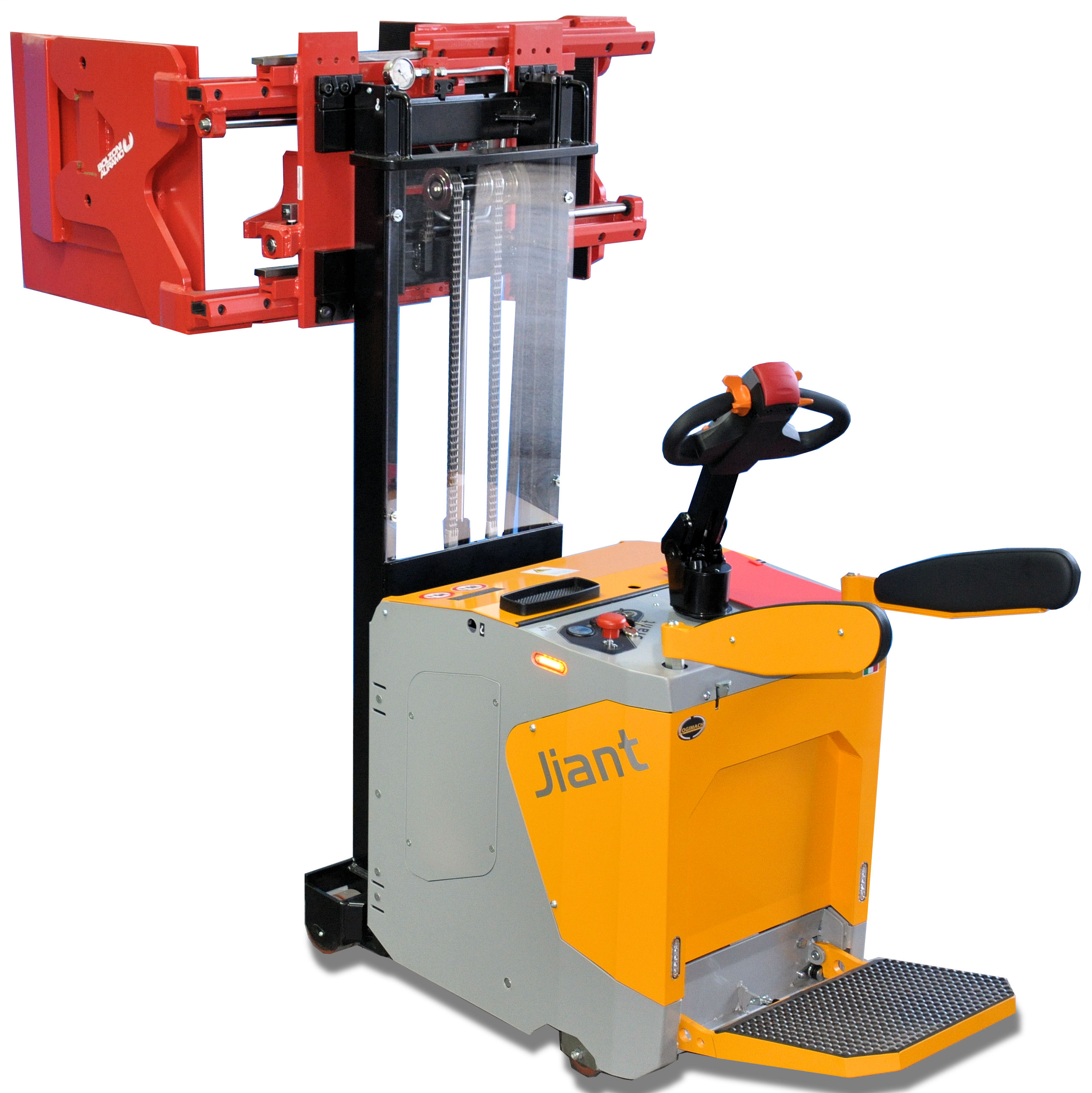 Portata fino a 500 kg – Sollevamento fino a 1.400 mmIl carrello elevatore JIANT è dotato di pinza idraulica con ganasce.